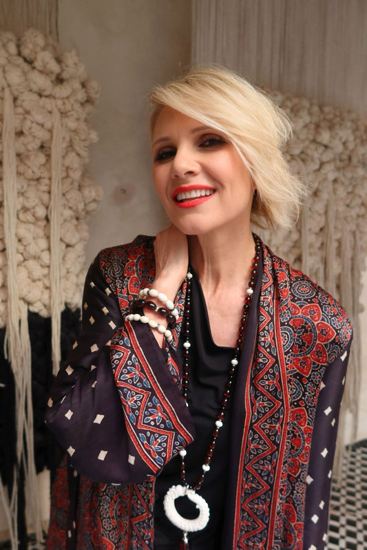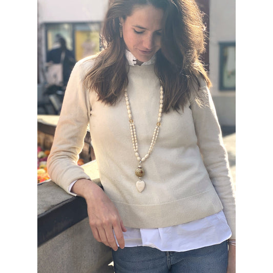 Sautoir en mammouth avec boule en jade sculptée - pièce unique -