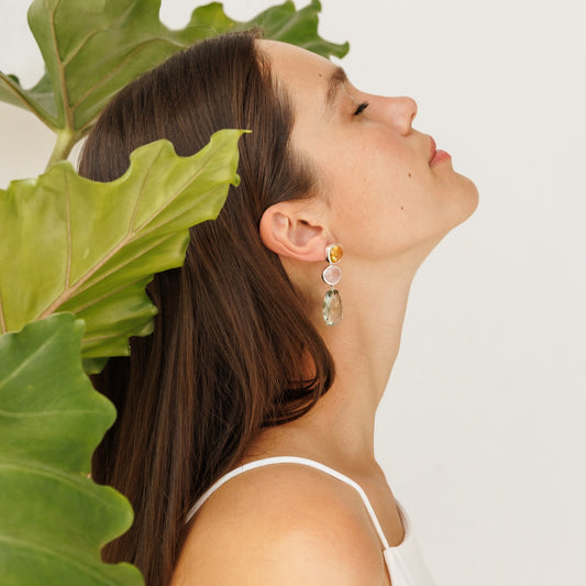 Boucles d'oreilles pendantes en prasiolite Pietra
