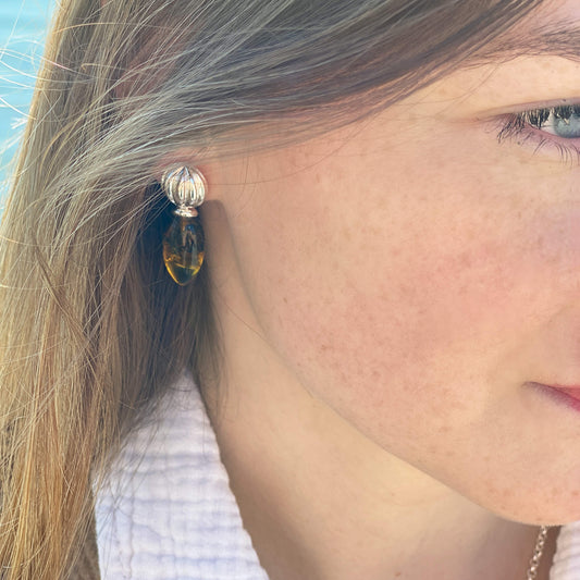 Boucles d'oreilles à tige en chrysoprase citronnée et scarabée