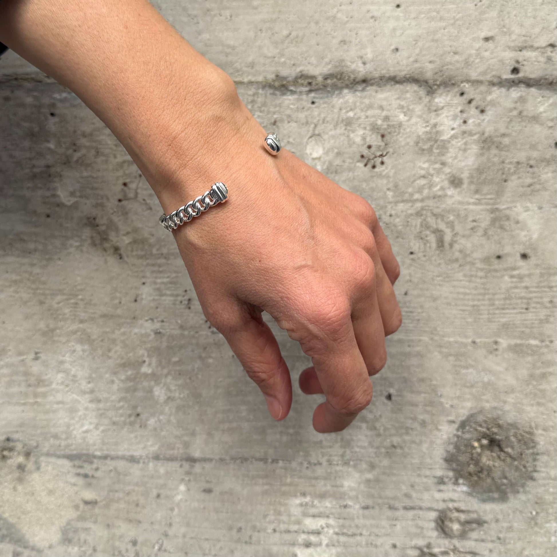 Klassik trifft auf moderne Eleganz: Der Armreif Zora besticht durch sein edles Panzerketten-Muster – kraftvoll und doch filigran. Das hochwertige 925 Sterling Silber sorgt für einen dezenten Glanz, während die leicht anpassbare Form (ca. 17–20 cm) optimalen Tragekomfort garantiert. Ob solo getragen oder im Layering-Look – Zora ist ein stilvoller Begleiter für jeden Tag.