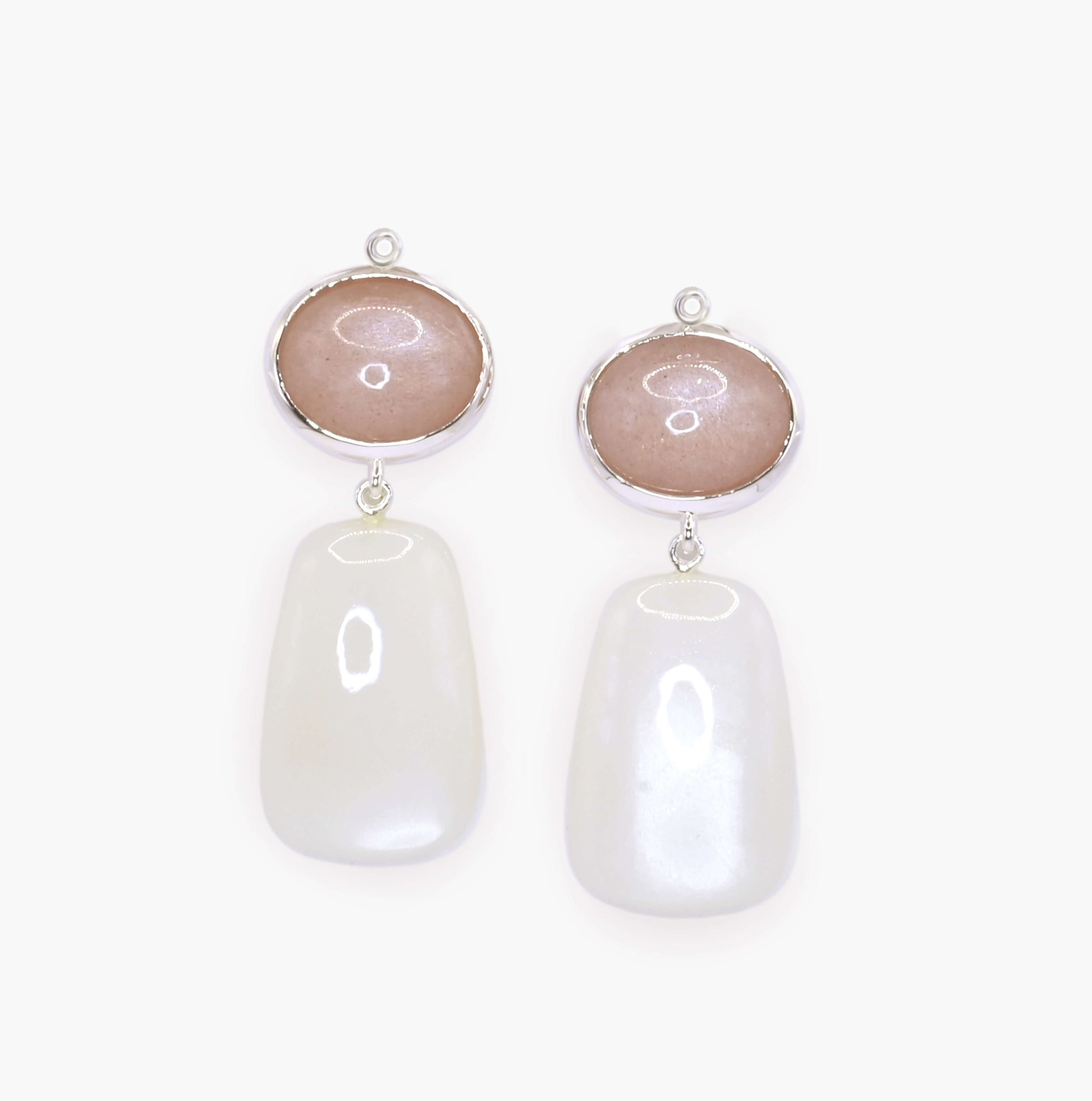 Die Moon Hänger verleihen deinem Ohrschmuck eine faszinierende Leichtigkeit und lassen sich dank des modularen Systems individuell kombinieren. Zwei schimmernde Mondsteine in zarten Farbnuancen – Rosa und Weiss – bilden den eleganten Anhänger und sorgen für ein sanftes, lichtreflektierendes Farbspiel.